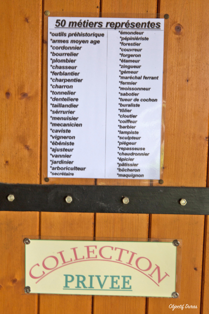 À VISITER À SOUMENSAC 3 MUSÉES UNIQUES DANS LA RÉGION: VIEUX OUTILS, FERS À REPASSER ET POUPÉES ANCIENNES 26 juillet 201726 juillet 2017| 21:05 Partager avec : Partager sur Facebook(ouvre dans une nouvelle fenêtre) Facebook Partager sur Tumblr(ouvre dans une nouvelle fenêtre) Tumblr Partager sur Pinterest(ouvre dans une nouvelle fenêtre) Pinterest Envoyer un lien par e-mail à un ami(ouvre dans une nouvelle fenêtre) E-mail Partager sur X(ouvre dans une nouvelle fenêtre) X Imprimer(ouvre dans une nouvelle fenêtre) Imprimer J’aime ça :J’aime chargement… Articles similaires Laisser un commentaireAnnuler la réponse. Ce site utilise Akismet pour réduire les indésirables. En savoir plus sur la façon dont les données de vos commentaires sont traitées. Navigation de l’article PRECEDENT Article précédent : PROMENADE SUR LE CHEMIN DE RONDE À SOUMENSAC 26/07/2017SUIVANT Article suivant : PARCOURS ARTISTIQUE ARTERE 2017. Soumensac : Monolithe percé – Cécile Noguès – 2017 Related Post LE JARDIN D’ALPHONSE INTERPRETE PAR L’ATELIER THEÂTRE DE MARMANDE, AU CHÂTEAU DE DURAS LE 30/11/2019 – 3EME PARTIE.LE JARDIN D’ALPHONSE INTERPRETE PAR L’ATELIER THEÂTRE DE MARMANDE, AU CHÂTEAU DE DURAS LE 30/11/2019 – 3EME PARTIE. Lire la suiteLire la suite Le Caméléon sous la lune, St Sernin 18 et 19 juin 2023. (série 2)Le Caméléon sous la lune, St Sernin 18 et 19 juin 2023. (série 2) Lire la suiteLire la suite LES MÉDIÉVALES À DURAS 06/08/2017LES MÉDIÉVALES À DURAS 06/08/2017 Lire la suiteLire la suite LES PASSEURS DE MÉMOIRE DU PAYS DE DURAS: LE CAFÉ DES SPORTS AVEC HENRIETTE LAGRANGELES PASSEURS DE MÉMOIRE DU PAYS DE DURAS: LE CAFÉ DES SPORTS AVEC HENRIETTE LAGRANGE Lire la suiteLire la suite LES PASSEURS DE MÉMOIRE DU PAYS DE DURAS: TINTIN THOMAS, UNE HISTOIRE QUI AURAIT PU MAL FINIR……LES PASSEURS DE MÉMOIRE DU PAYS DE DURAS: TINTIN THOMAS, UNE HISTOIRE QUI AURAIT PU MAL FINIR…… Lire la suiteLire la suite