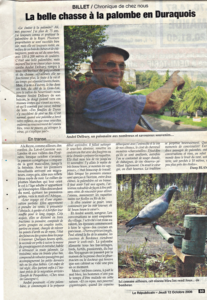 Objectif Duras Accueil LA CHRONIQUE DU PASSE: LA CHASSE A LA PALOMBE 21/10/2017