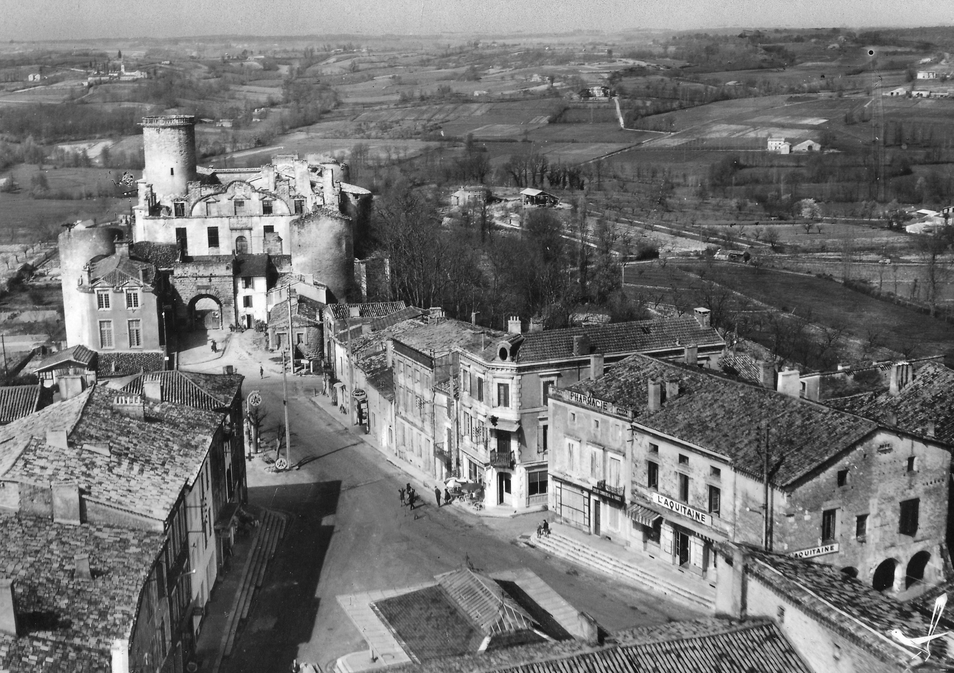 LES PASSEURS DE MÉMOIRE DU PAYS DE DURAS: Vue aérienne du bas du village et du château